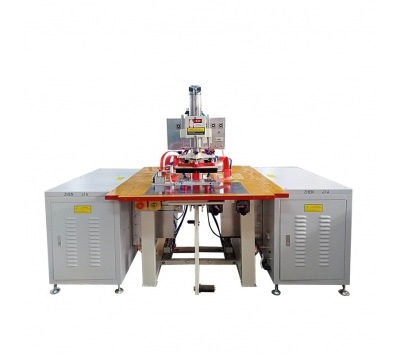 双头气动双电箱高周波机:操作工作台面板分别为机头的两边,操作方式主要是由操作人员右脚踏定位和左脚开关,焊接过程由时间自动控制,2个电箱好处左右可以同时使用。